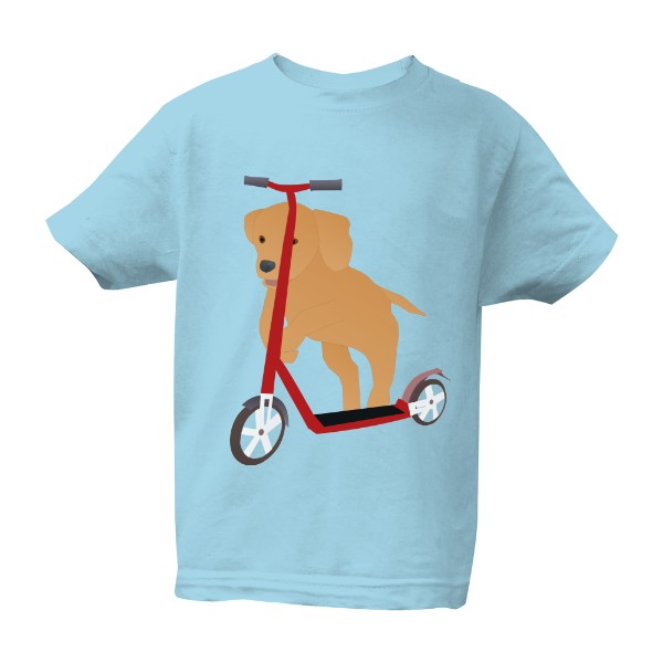 Dívčí tričko růžové barvy se psíkem na koloběžce. Barvu trika lze změnit.